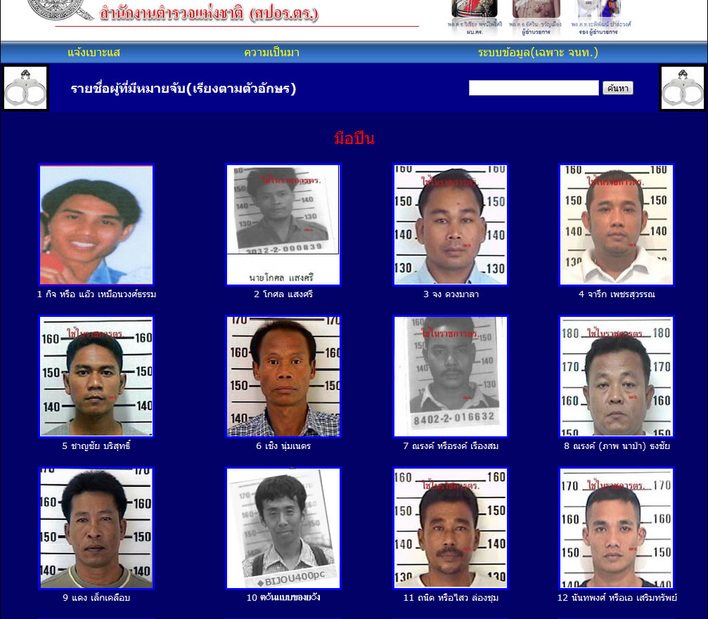 「殺し屋リスト」公開中 タイ警察のウェブサイト