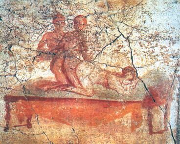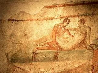 『ローマ人の愛と性』(講談社現代新書)などの著書がある、文学博士(西洋史学)の本村凌二東大教授は、ポンペイを訪れた際の町の様子をこう語る。「家の中や商店街の通路、広場、公共施設などの壁には落書きが残され、そこに赤裸々なセックスへの想いの丈が描かれています」