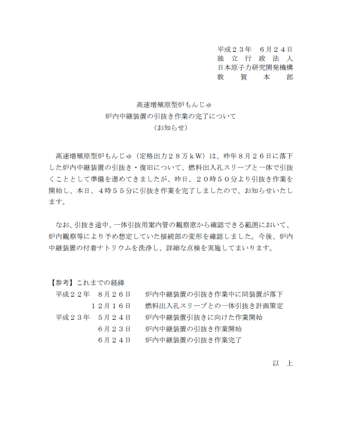 いやあよかったよかった。もんじゅは早く廃炉にしろよな。