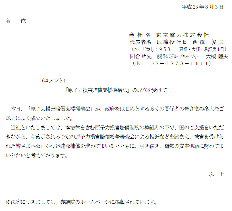 この法律は、福島第一原発の事故に伴う東京電力の賠償金の支払いを支援するため、